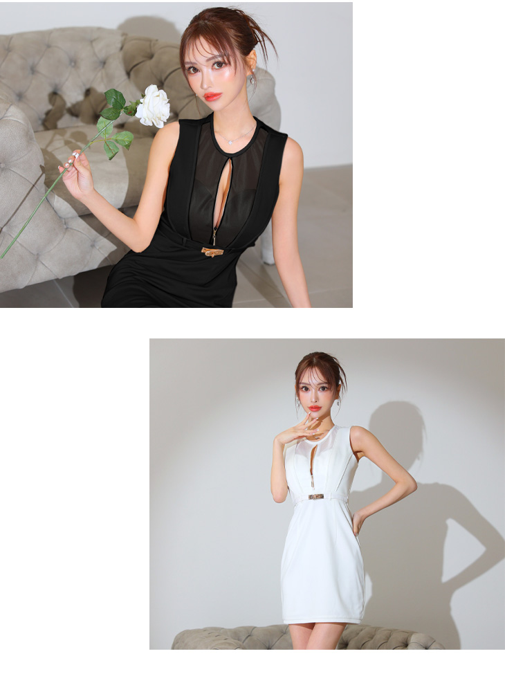 3. Glossy ローブドフルールグロッシー ベルトデザイン×デコルテメッシュノースリーブタイトミニキャバドレス gl3723-c