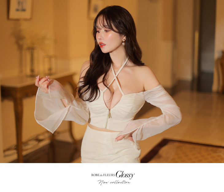 4. Glossy ローブドフルールグロッシー シアースリーブクロスストラップセットアップミニキャバドレス gl3736-c