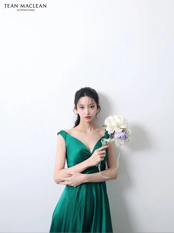 JEAN MACLEAN ジャンマクレーン ワンカラー/サテン/タックデザイン/Aライン/フレア/ロングドレス ja51949-c