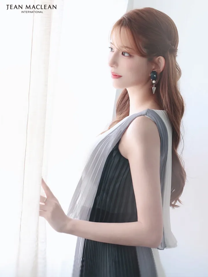 3. JEAN MACLEAN ジャンマクレーン グラデーション/シフォン/ウエスト切替/プリーツ/ミモレ丈/ロングドレス ja51950-c