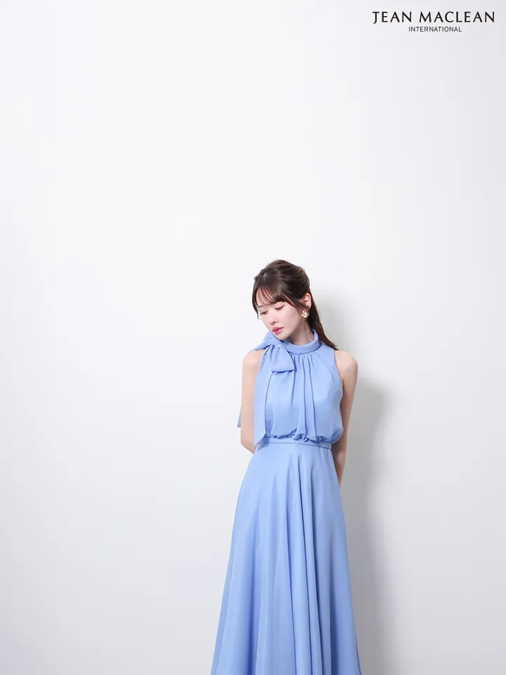 JEAN MACLEAN ジャンマクレーン パステルカラー/シフォン/ボウタイリボン/ウエスト切替/Aライン/ロングドレス ja61032