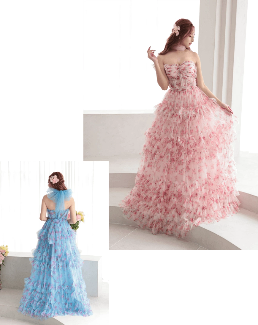 まるで花が咲きこぼれた花園のようなドレス