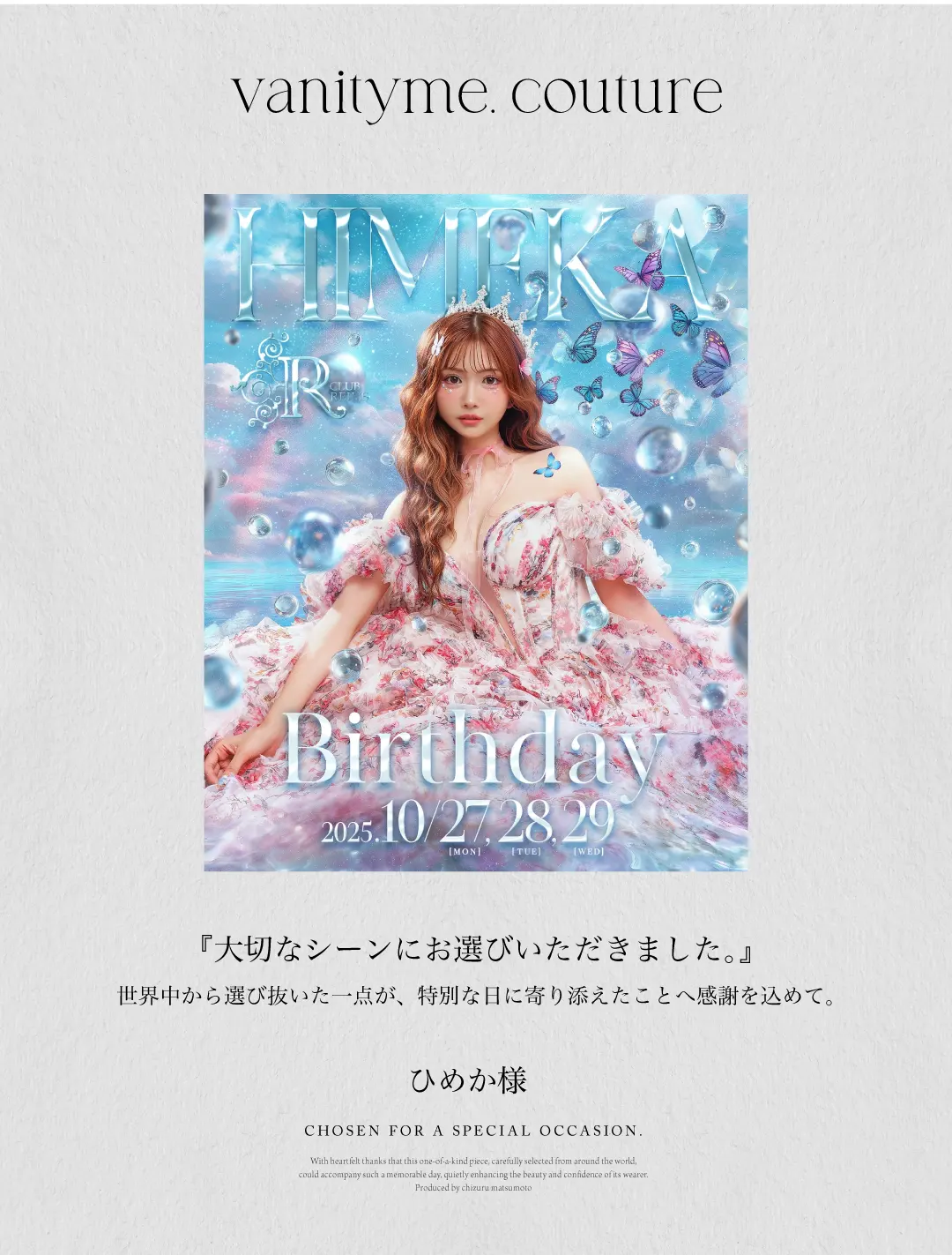 独自のルートで世界中からセレクトする、販売数量限定のイベントドレスブランド「vanityME.couture.」を展開!