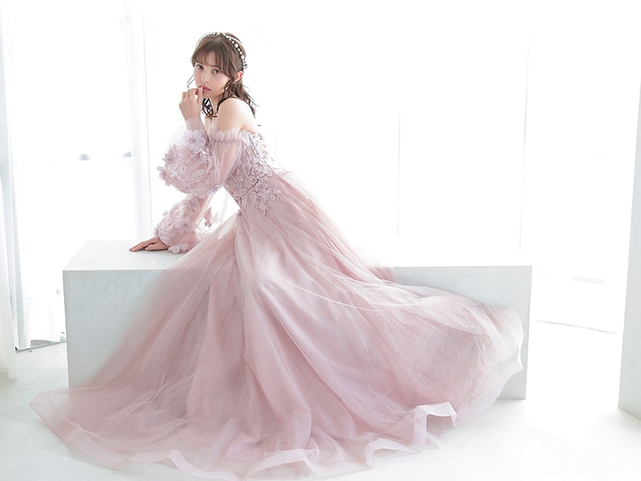 3. vanityME.couture. バニティーミークチュール バースデードレス 2WAY ふわふわ パフ袖オフショル ロングドレス [ダスティピンク/ダスティブルー] vctr-la-2220