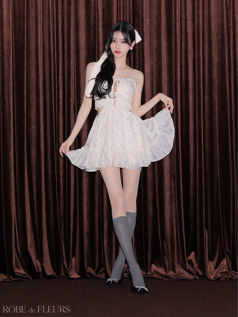 【お取り寄せ商品】 ROBE de FLEURS anier.ROBE ローブドフルール アニエルローブ 【XSサイズあり】Chiffon amesuri bust cutout tight mini dress fm-anier4061-c