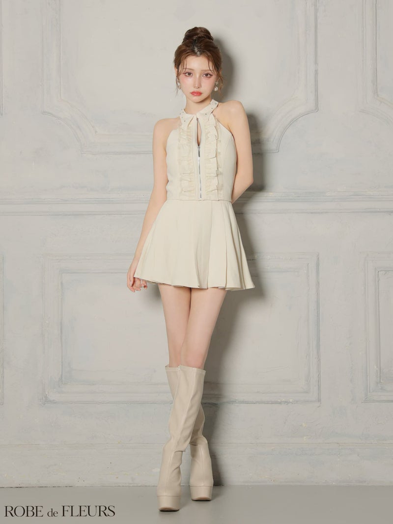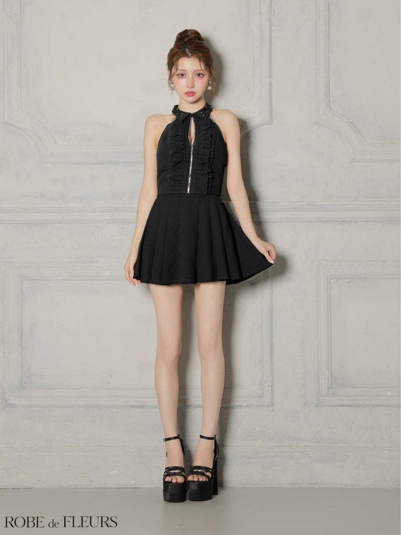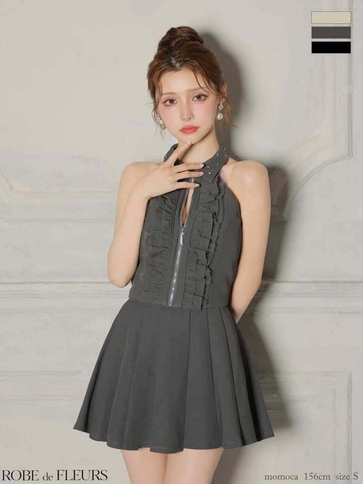 【即日発送】 AngelR エンジェルアール ホルターネックパールチェーンビジューセパレート2ピースポケット付きタイトマイクロミニドレス ar25350