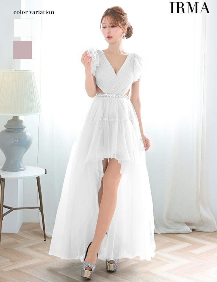 【即日発送】 IRMA イルマ チュールスリーブ/ビジュー/ウエスト切替/ロングテール/前ミニ ロングドレス ir51925