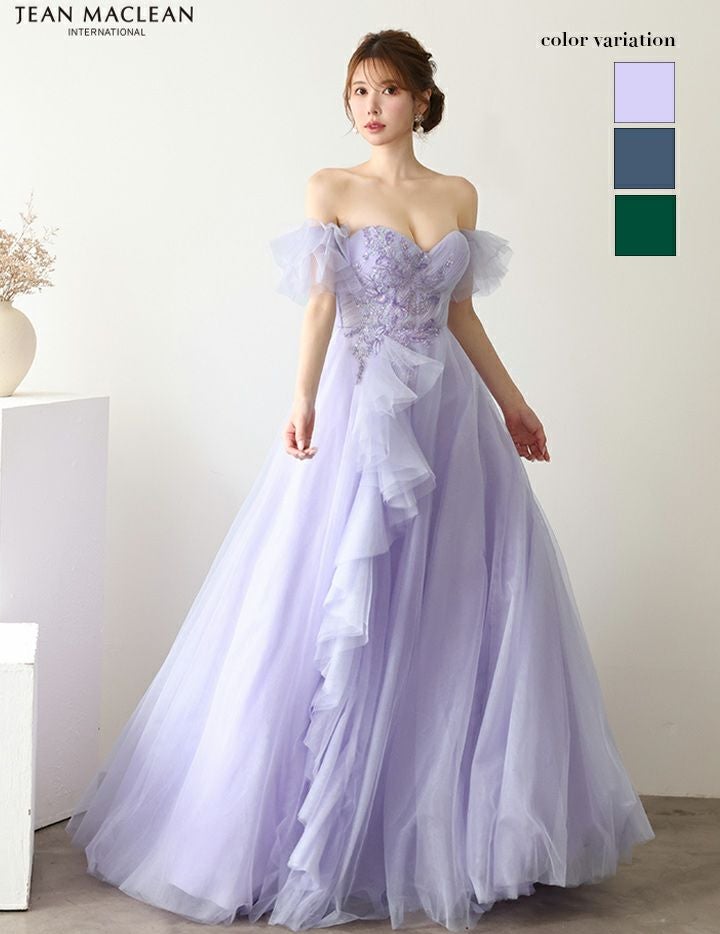 【お取り寄せ商品】 JEAN MACLEAN ジャンマクレーン 立体フラワーモチーフ/オフショル/ウェーブチュール/姫/ロングドレス ja51907-c