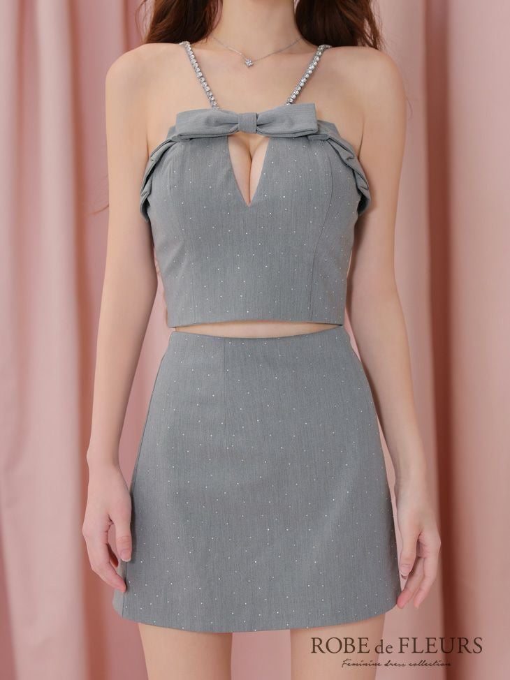 【即日発送】 ROBE de FLEURS ローブドフルール 【XSサイズあり】バストリボンキュートセットアップタイトミニキャバドレス fm3453