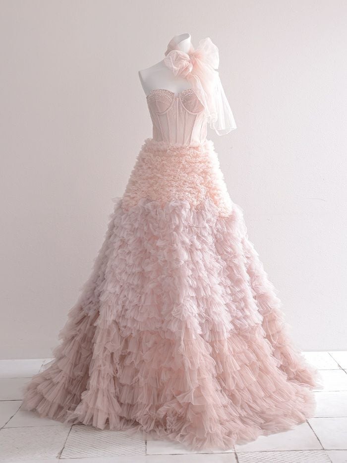 【即日発送】 vanityME.couture. バニティーミークチュール コルセットレース グラデーション ボリュームフリル プリンセス 姫 ロングドレス バースデードレス [ ピンク ] vctr-la-2402