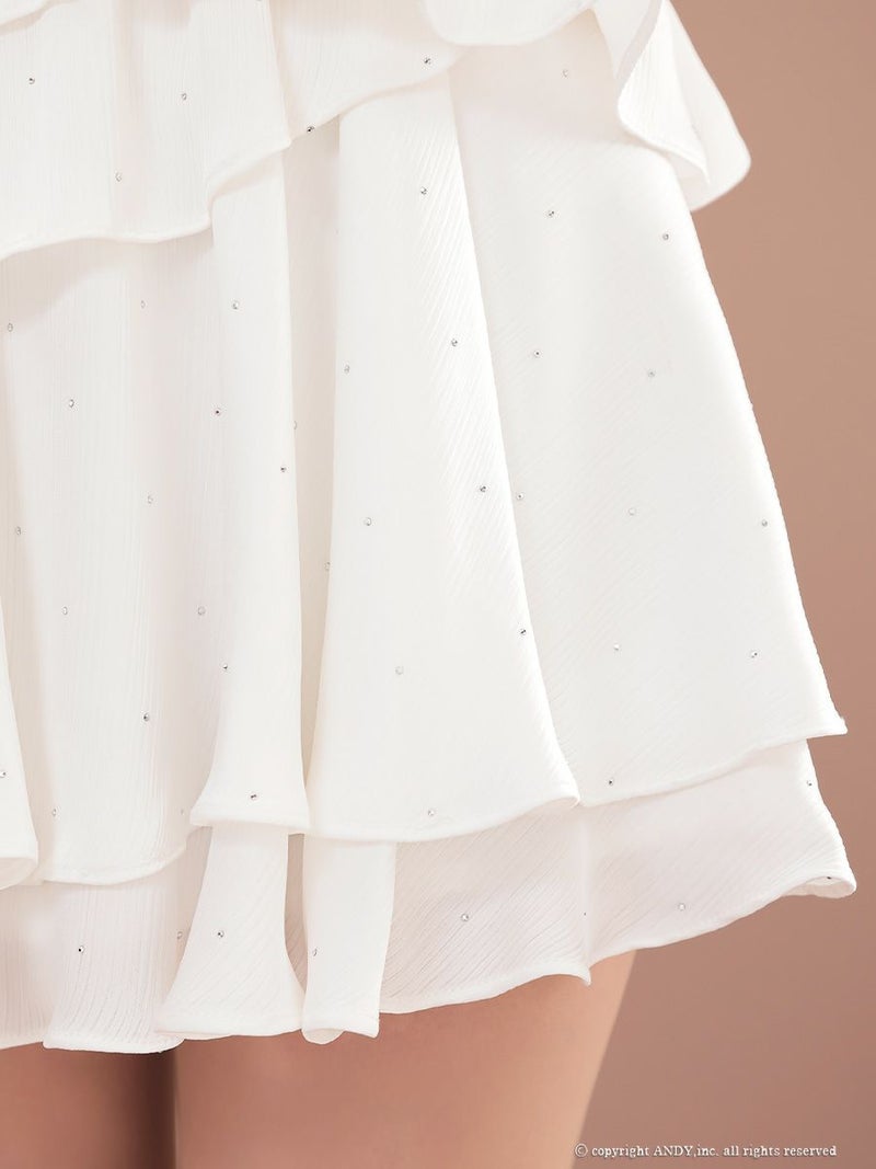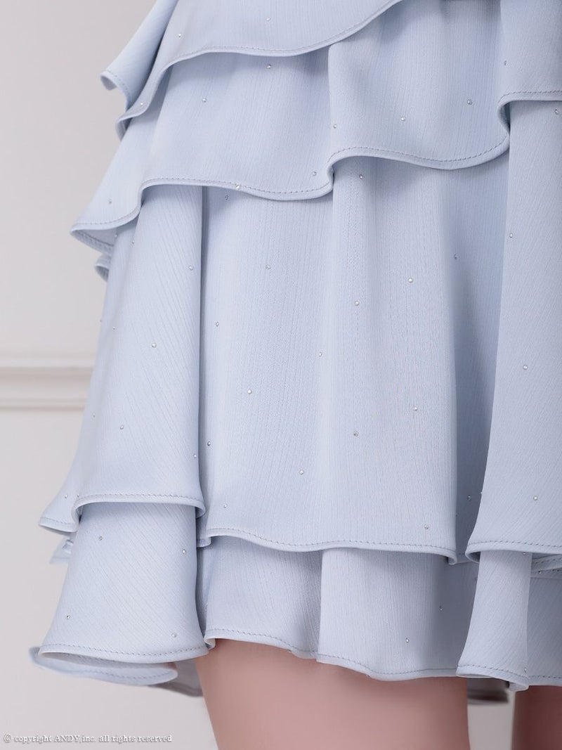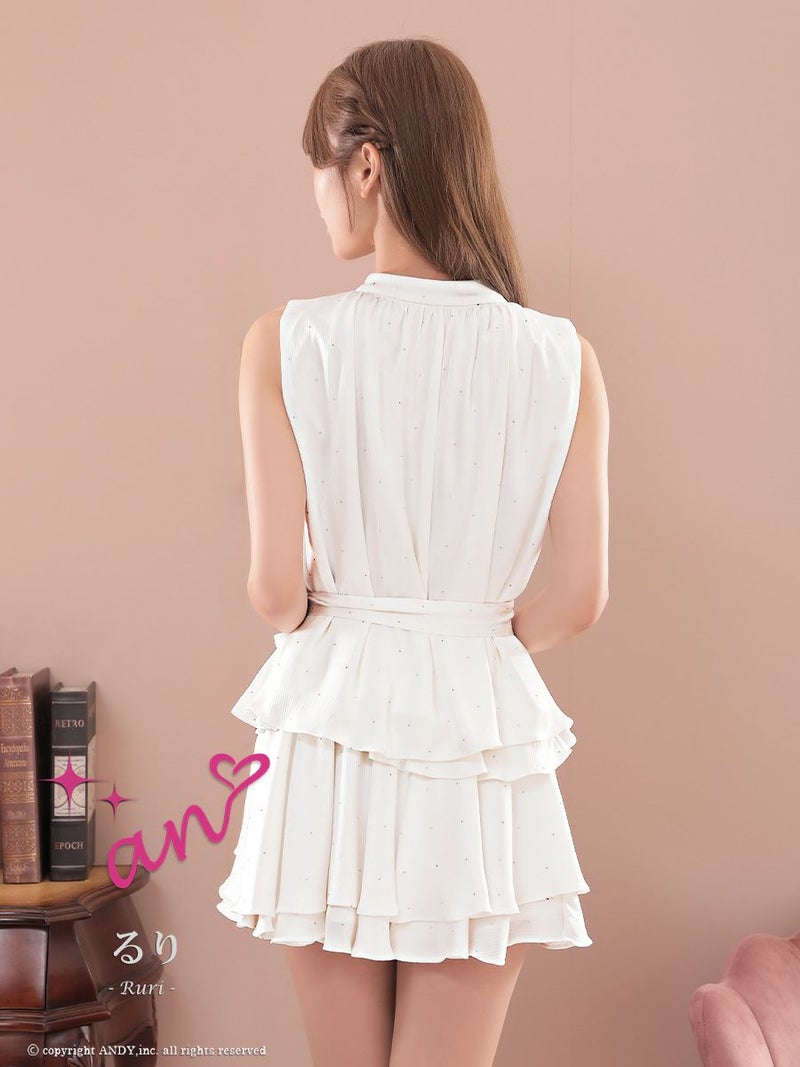 【即日発送】 an アン ラメドット フロントジップ ウエストリボン ティアード フレア ミニドレス aoc-3946