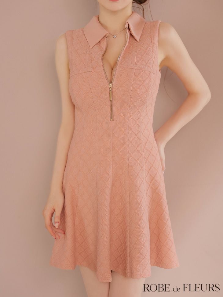 【即日発送】 DEA. ディア バイ ローブドフルール 襟付きバストジップノースリーブベルトデザインミニキャバドレス de3259