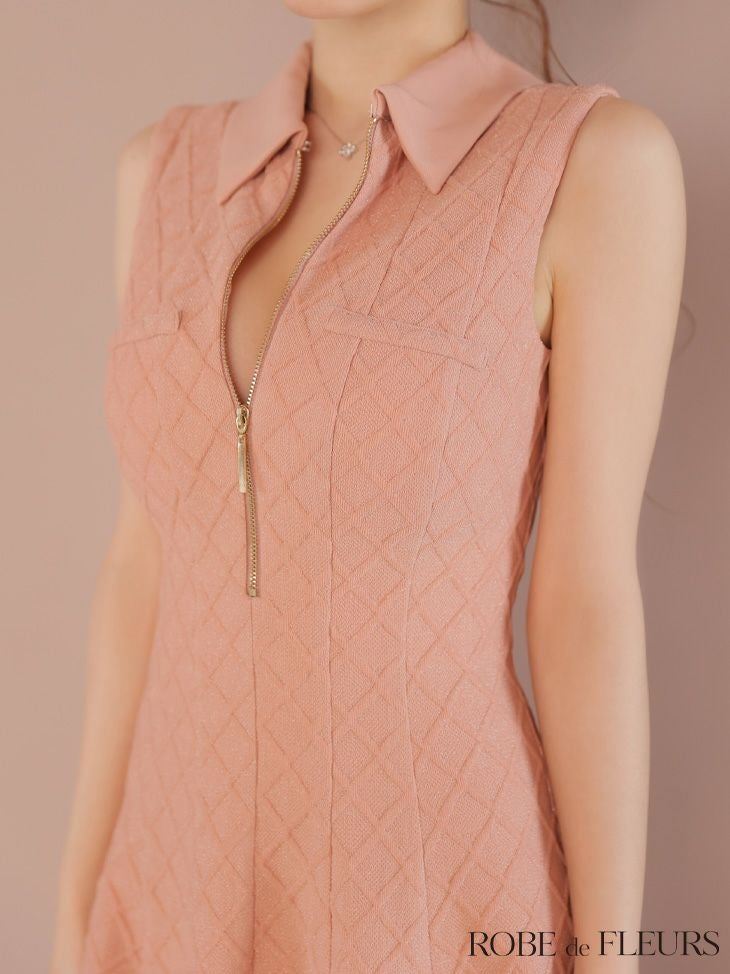 【一部予約商品*】 《brown:2月中旬頃入荷予定》ROBE de FLEURS ローブドフルール 襟付きシンプルラメフレアミニキャバドレス fm4212
