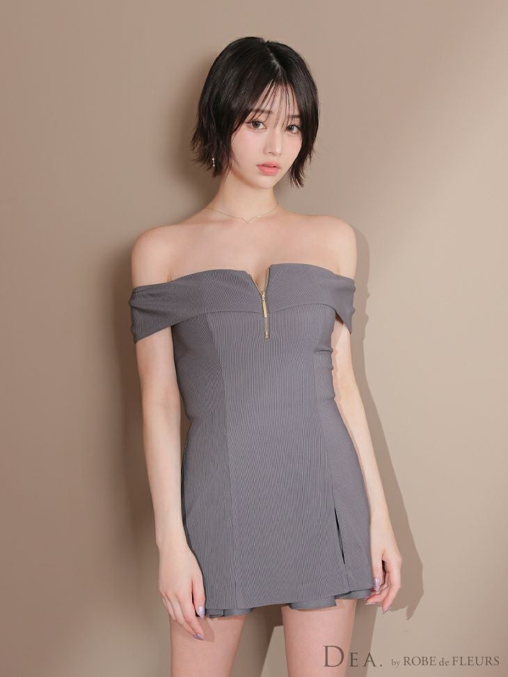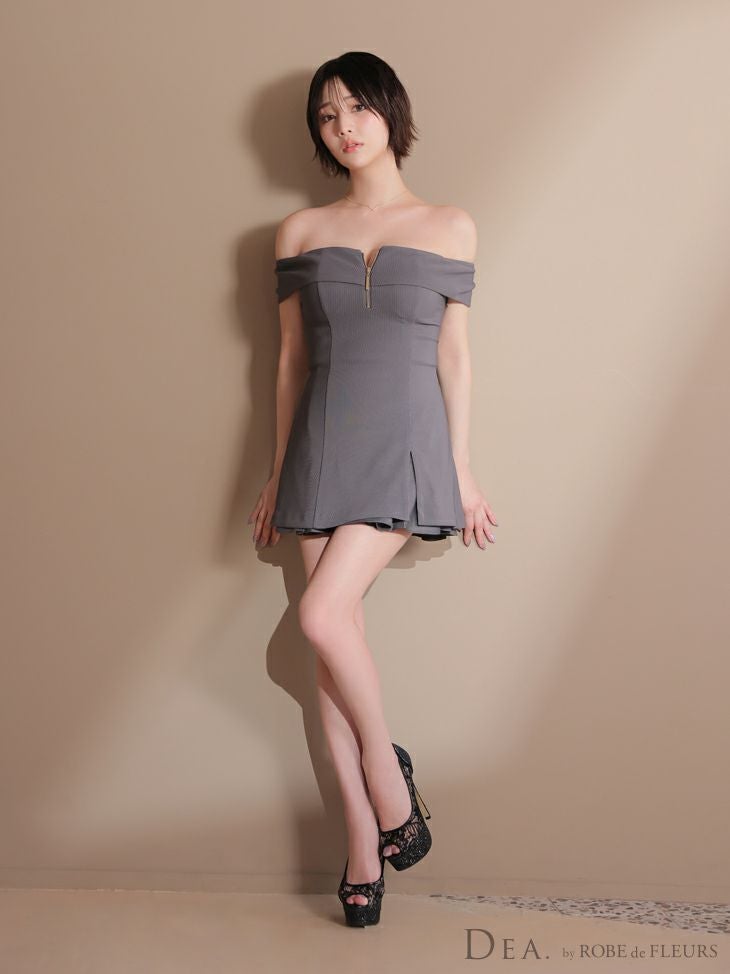 【即日発送】 DEA. ディア バイ ローブドフルール バストジップオフショルセットアップフレアミニキャバドレス de4217