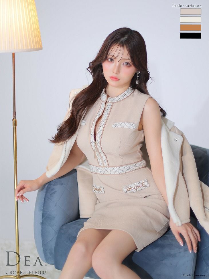 【お取り寄せ商品】 DEA. ディア バイ ローブドフルール フロントジッパー×ラメツイードミニドレス de2962-c