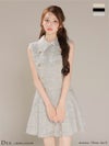 【即日発送】 ERUKEI エルケイ ベージュ・総レース・金糸・レザー・レースアップ・ノースリーブ・切替・Aライン・ミニドレス・ワンピース ek-e25124