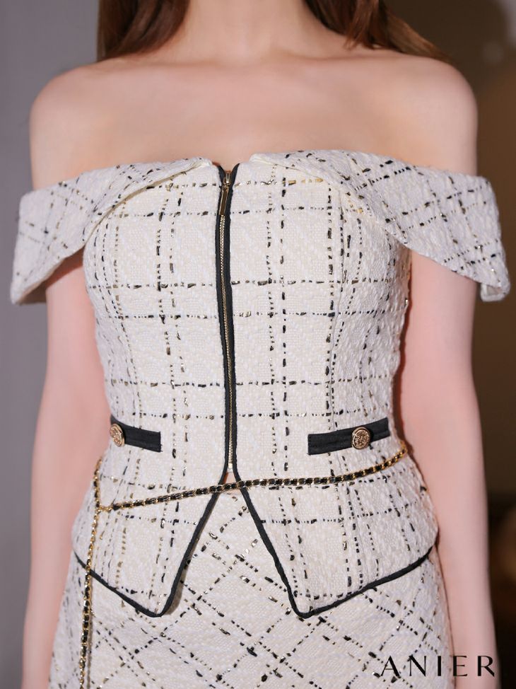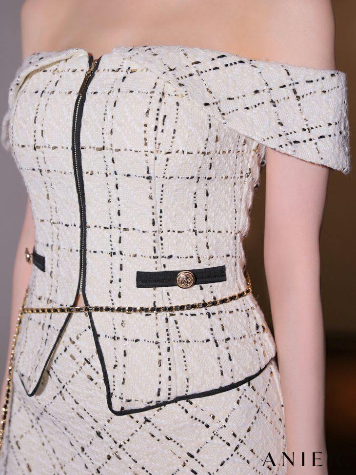 【即日発送】 ROBE de FLEURS anier.ROBE ローブドフルール アニエルローブ 【XSサイズあり】 Tweed off-the-shoulder waistut bunny halloween dress ツイードオフショルウエストカットバニーミニドレス fm-anier4054