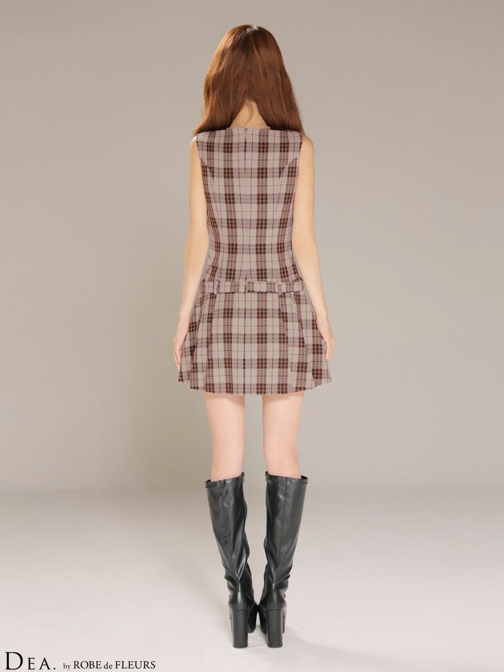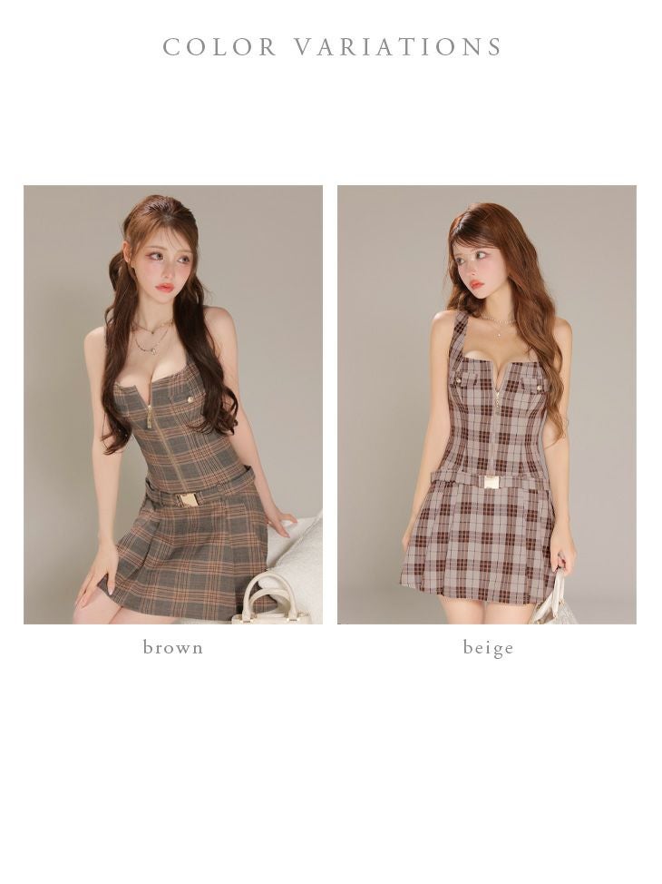 【お取り寄せ商品】 DEA. ディア バイ ローブドフルール 【XSサイズあり】Vカットジップチェック柄タイトミニキャバドレス de4618-c