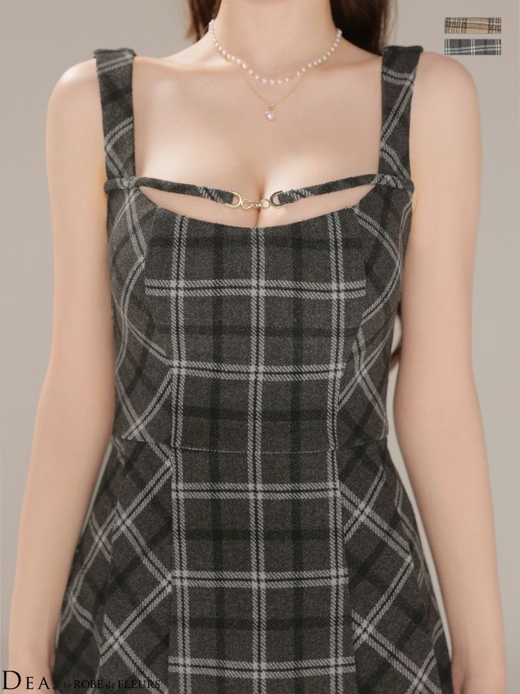 【お取り寄せ商品】 DEA. ディア バイ ローブドフルール 【XSサイズあり】ふんわり起毛チェックキャミソールフレアミニキャバドレス de4608-c