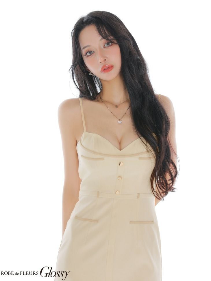 【お取り寄せ商品】 Glossy ローブドフルールグロッシー【XSサイズあり】ツイルフロントボタンキャミタイトミニキャバドレス gl4148-c