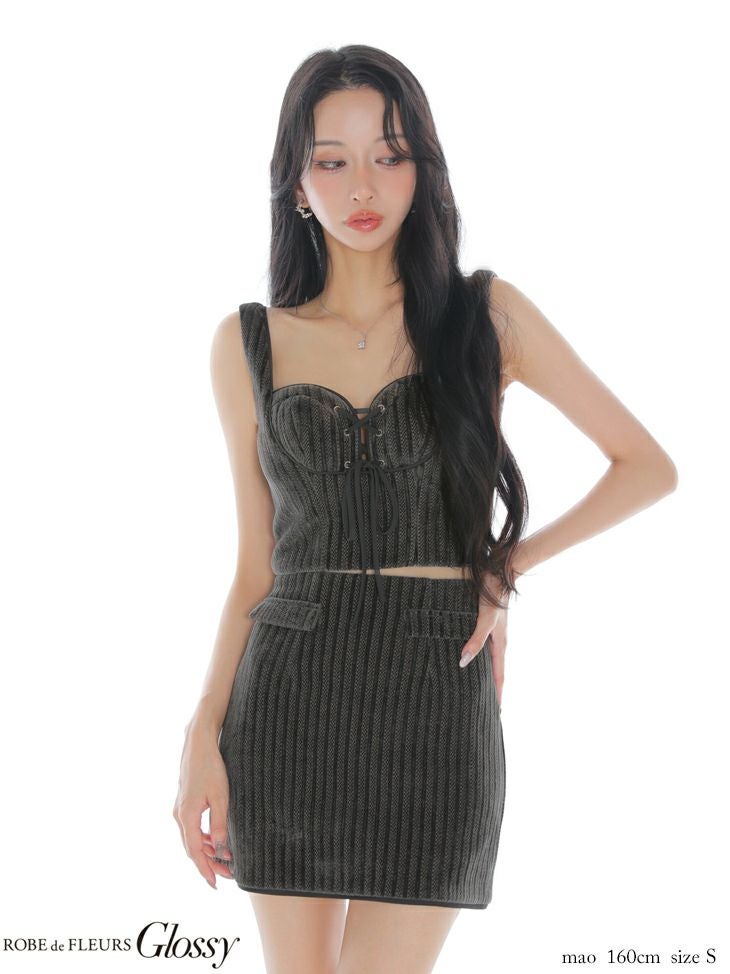 【即日発送】 Glossy ローブドフルールグロッシー 【XSサイズあり】ストレッチコーデュロイレースアップセットアップミニキャバドレス gl4310
