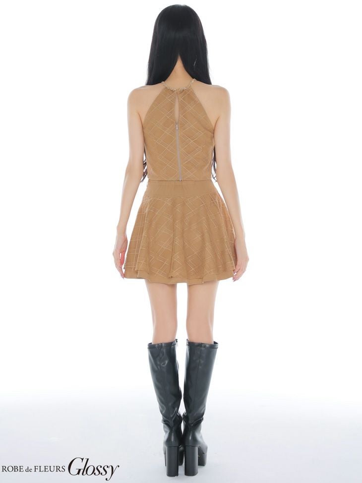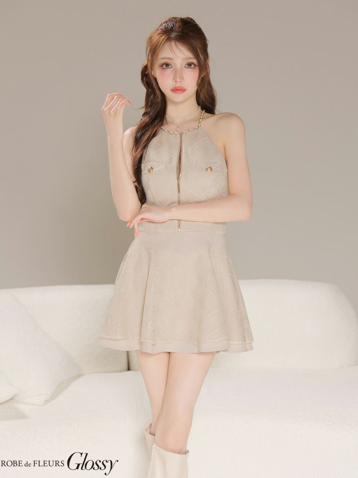 【お取り寄せ商品】 Glossy ローブドフルールグロッシー 【XSサイズあり】ふわふわ起毛ホルターネックセットアップミニキャバドレス gl3954-c