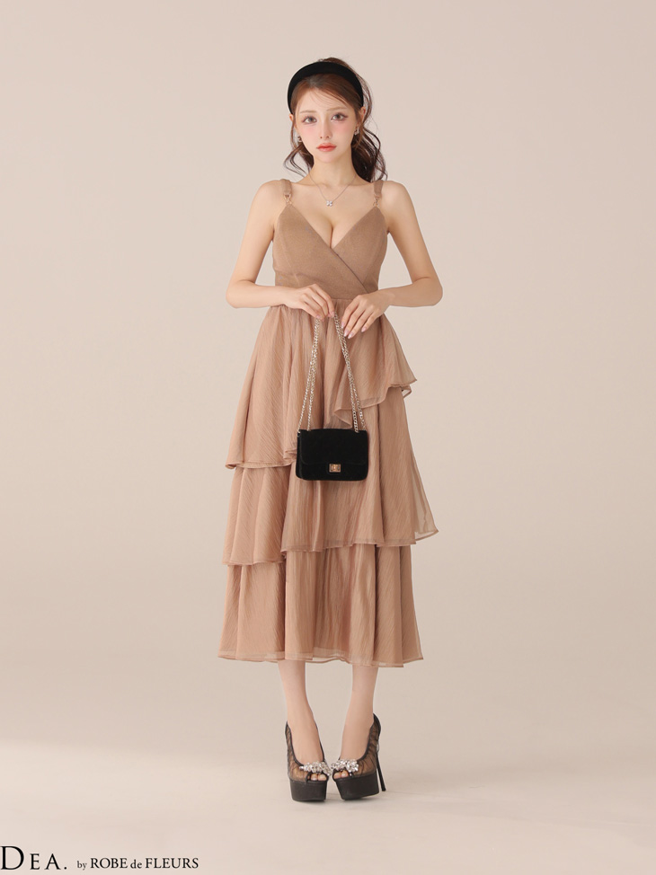 3. DEA. ディア バイ ローブドフルール 【XS~Lサイズあり】 ティアードジャガードフリルスカートロングキャバドレス de4300-c