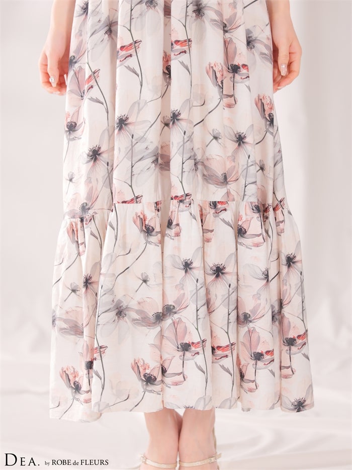 足元まで続く贅沢なボリューム感は、ミニドレスにはない「品格」と「優雅さ」を演出し、一歩歩くごとにドラマチックな余韻を残します。