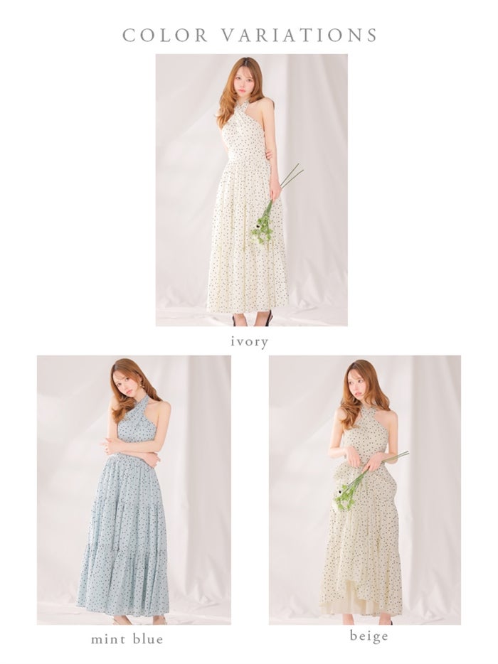 露出を抑えつつも、歩く際に見える足元の動きや、デコルテ・背中のカットにこだわることで、大人っぽく色気のある表情を演出できるのがポイント。