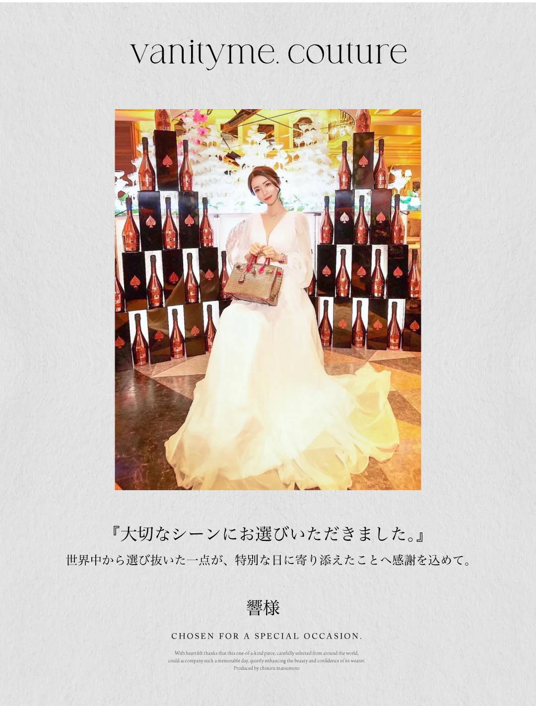 独自のルートで世界中からセレクトする、販売数量限定のイベントドレスブランド「vanityME.couture.」を展開!