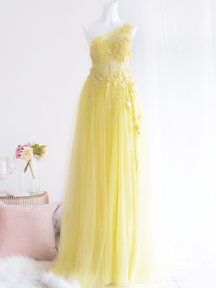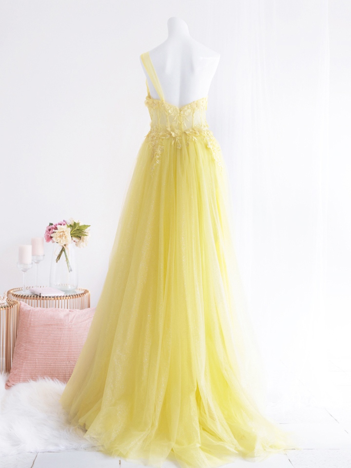 【即日発送】 vanityME.couture. バニィミークチュール バースデードレス ワンショルダー フラワー ロングドレス イエロー vctr-la-2382-1