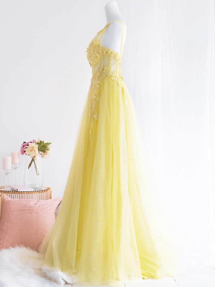 【即日発送】 【2点セット】vanityME.couture. バニティミークチュール オフショル チュール ビジューライン ヌードベース リボンショール付き プリンセス 姫 ロングドレス バースデードレス イエロー vctr-l-a1150-3