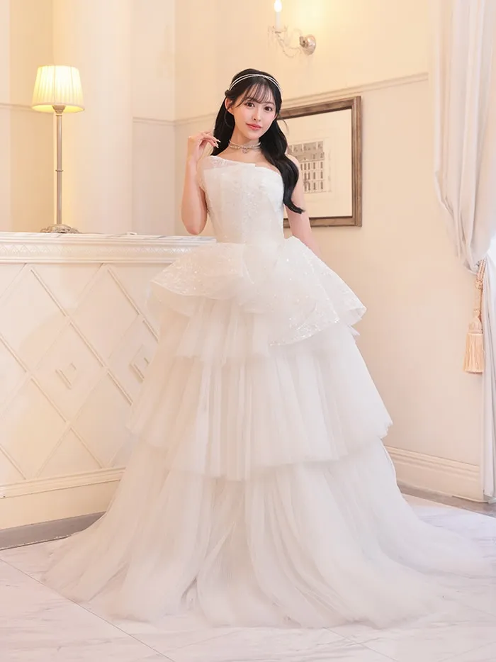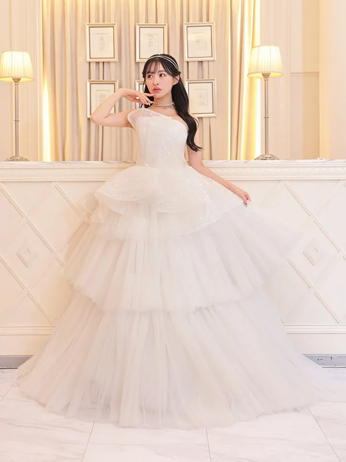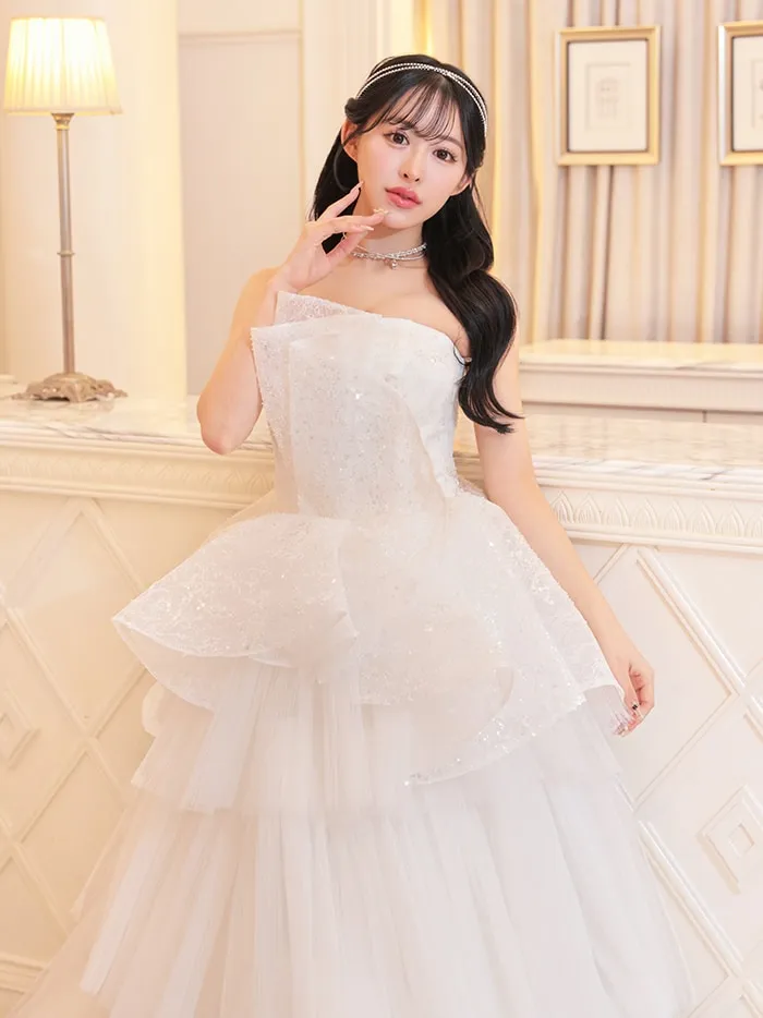 4. vanityME.couture. バニティミークチュール スパンコールレース ペプラム ベアトップ プリンセス 姫 ウエディングドレス ロングドレス ホワイト vctr-t-24111
