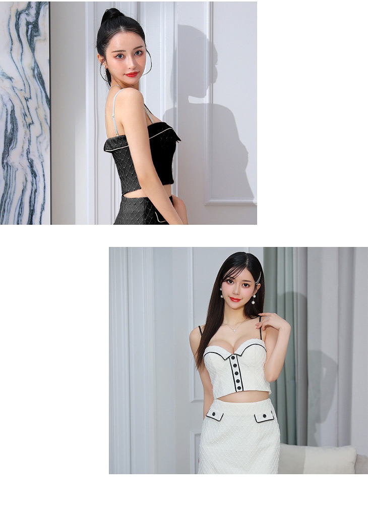 3. Glossy ローブドフルールグロッシー アイボリー ラメニットxボタンクラシカルセットアップキャバドレス GL3716-1