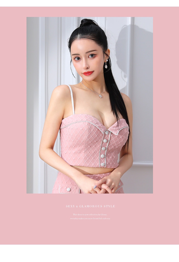 5. Glossy ローブドフルールグロッシー アイボリー ラメニットxボタンクラシカルセットアップキャバドレス GL3716-1