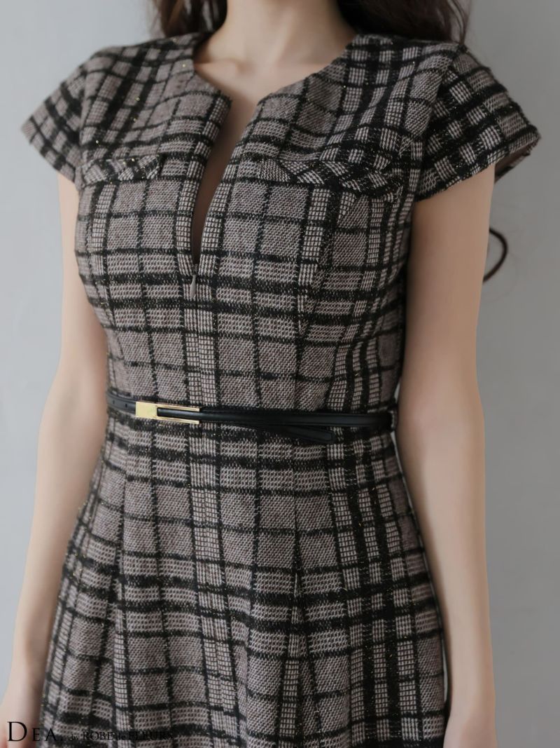 4. DEA. ディア バイ ローブドフルール 【XS~Lサイズあり】 チェックツイード袖付きプリーツスカートミニキャバドレス de4330-c