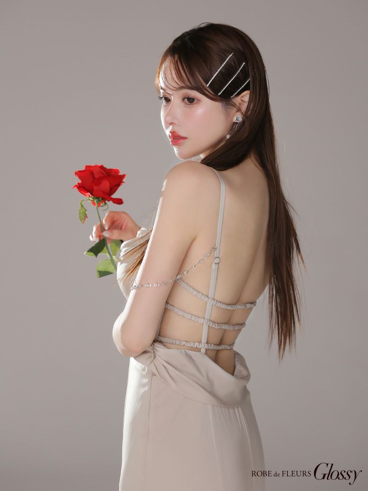 4. Glossy ローブドフルールグロッシー サテンバストビジューロングキャバドレス gl3768-c
