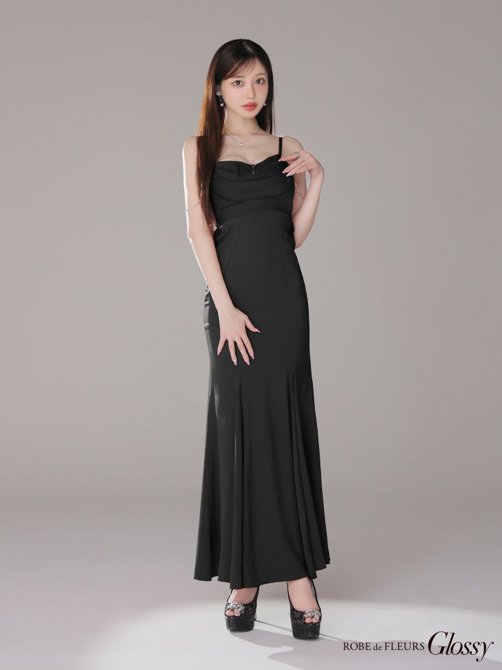 Glossy ローブドフルールグロッシー サテンバストビジューロングキャバドレス gl3768-c