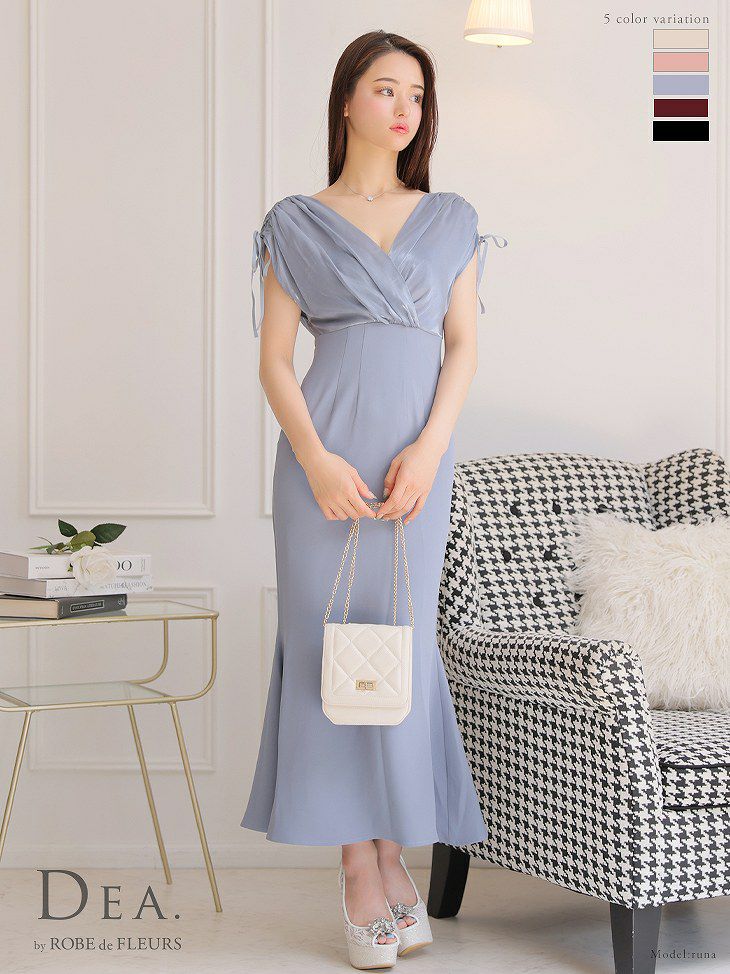 【お取り寄せ商品】 DEA. ディア バイ ローブドフルール ショルダーリボンマーメイドミディドレス de2839-c