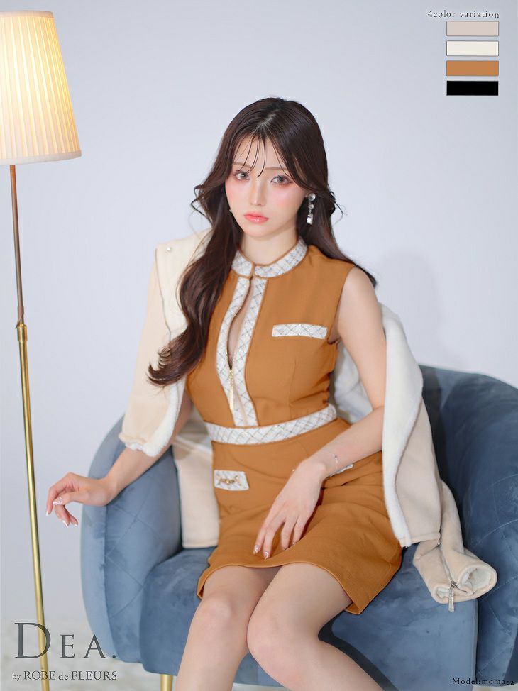 【お取り寄せ商品】 DEA. ディア バイ ローブドフルール 襟付きパイピングデザインノースリーブミディキャバドレス de3166-c