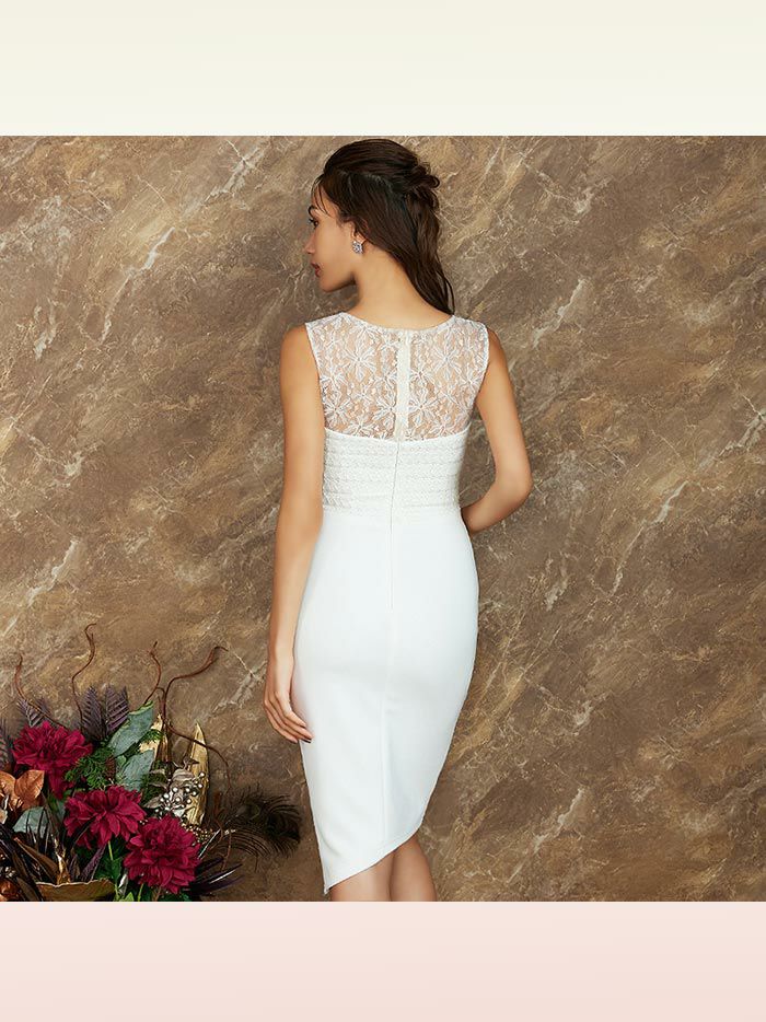 【即日発送】 ERUKEI エルケイ ホワイト 半袖・総レース・タイト・Vネック・ミニドレス・ワンピース ek-e23052-1