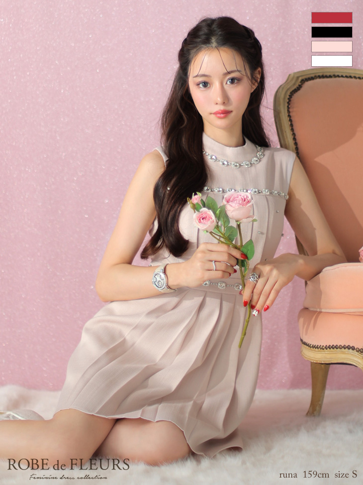 バスト・首元・ウエスト部分のビジューが顔回りを華やかにします♡