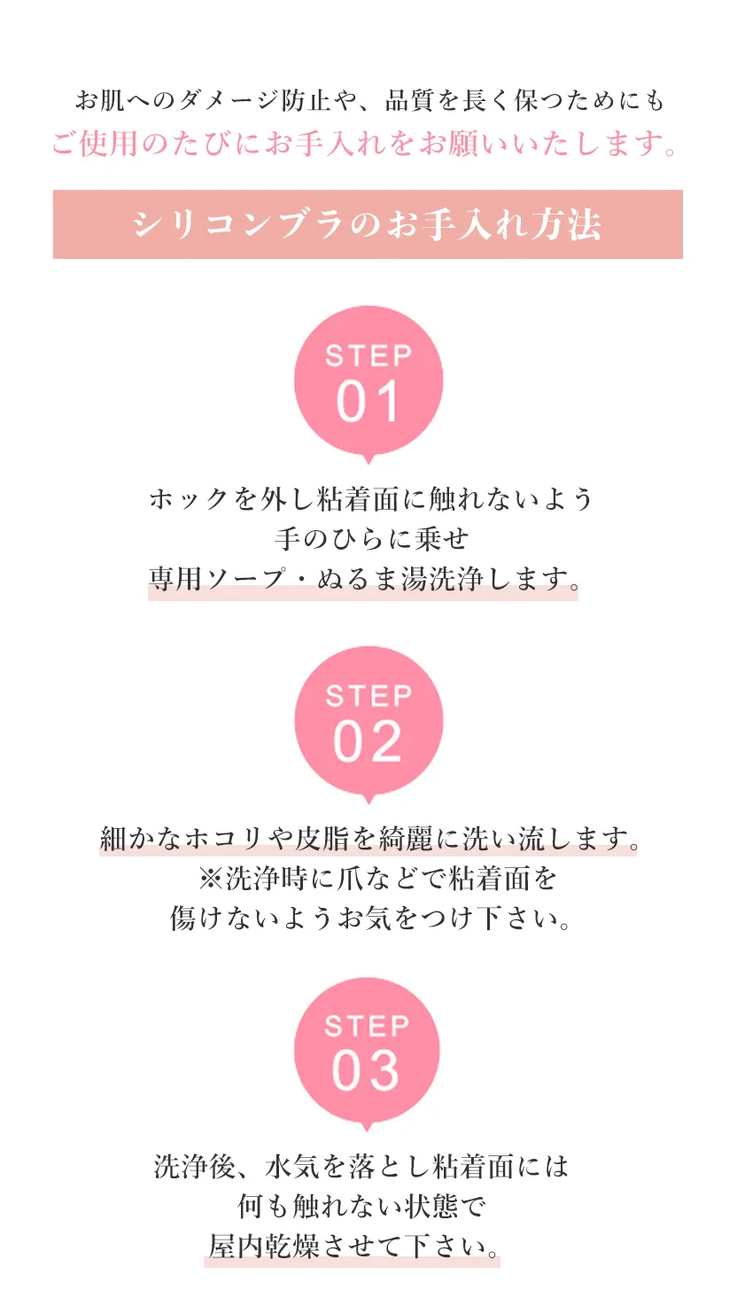 お肌に密着しながらも糊残りなどが無いよう自社オリジナル配合で作られたシリコン素材。