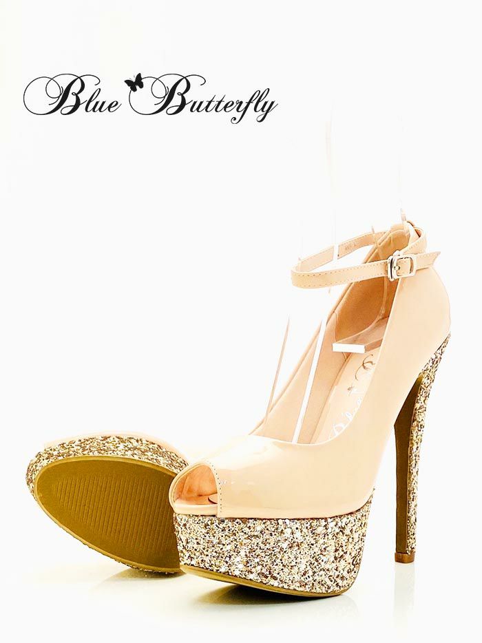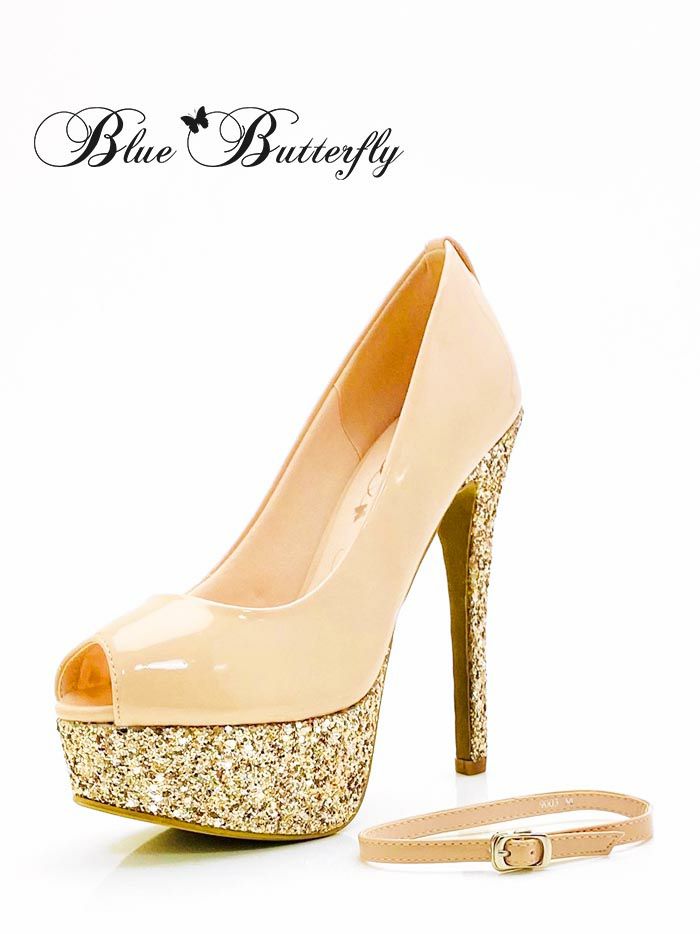 Blue Butterfly ブルーバタフライ コメックス ヒール14cm プラットフォーム ラメ オープントゥ ピンヒール 厚底 アンクルストラップ パンプス ハイヒール bl9003