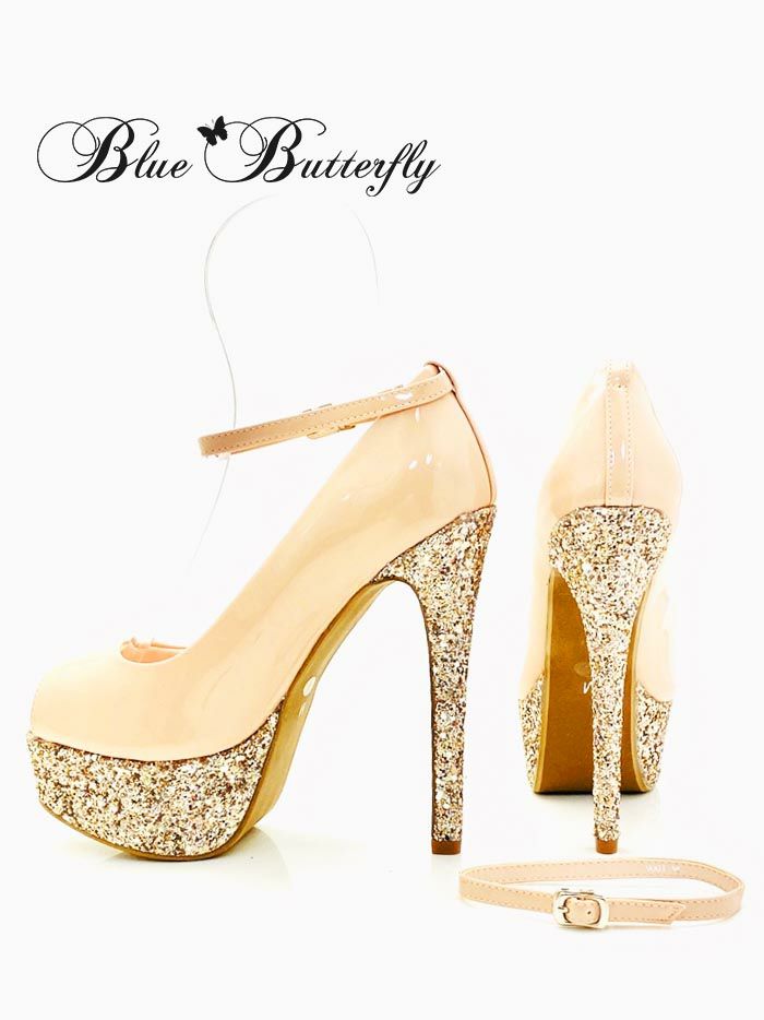 【即日発送】 Blue Butterfly ブルーバタフライ コメックス ヒール14cm プラットフォーム ラメ オープントゥ ピンヒール 厚底 アンクルストラップ パンプス ハイヒール bl9003