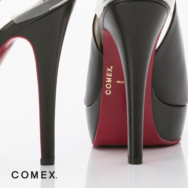 【お取り寄せ商品】 コメックス COMEX パンプス ピンヒール オープントゥ バッグベルト サンダル 13cm 厚底 プラットフォーム[ブラック]co-5412-1