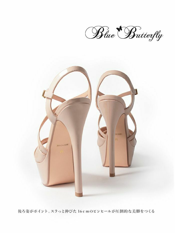 【お取り寄せ商品】 Blue Butterfly ブルーバタフライ コメックス ハイヒール 厚底 ピンヒール プラットフォーム ヒール15cm エナメル オープントゥ クロスストラップ パンプス サンダル ピンクベージュ bl9009