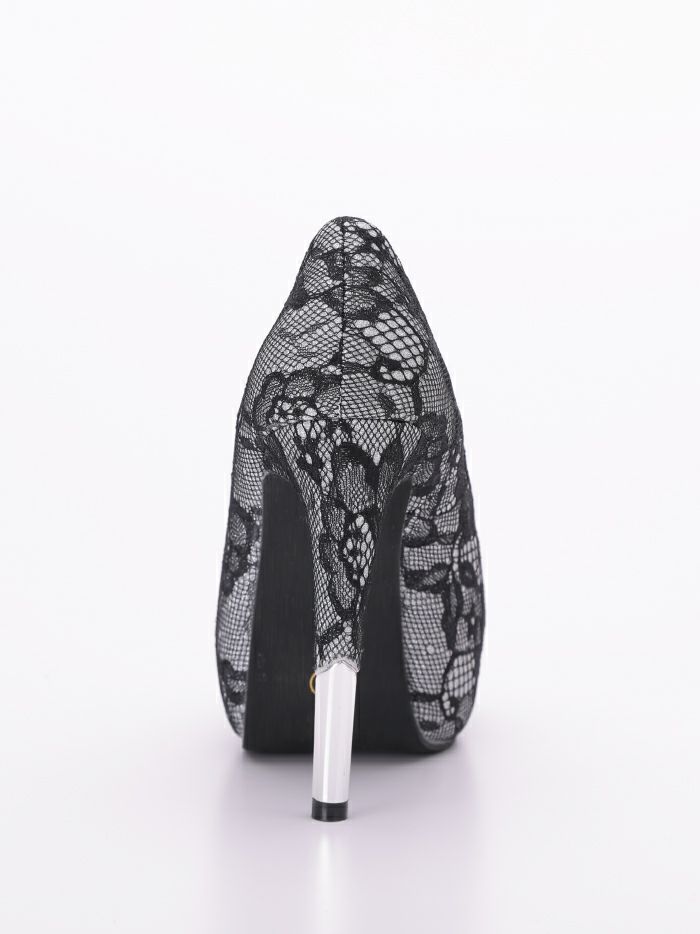 【2~5日前後で発送します!】 BENEDETTA 花柄シースルーレースパンチング パンプス シルバー・ブラック vsh-am-4010