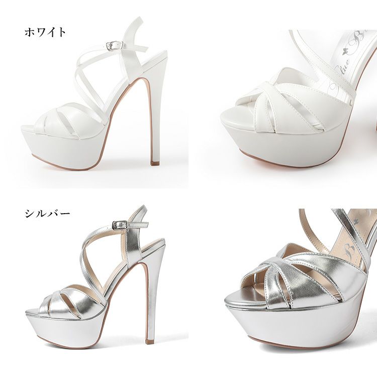 4. Blue Butterfly ブルーバタフライ コメックス ピンヒール プラットフォーム ヒール16cm 甲ストラップ オープントゥ パンプス ハイヒール ホワイト ブラック ピンクベージュ シルバー bl9005