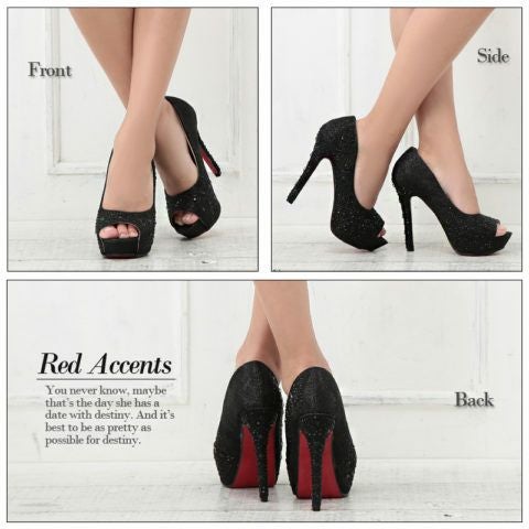 4. BENEDETTA ブロック ビジュー パンプス ブラック・ゴールド・シルバー・ホワイト・ブラック×クリア vsh-am-3276